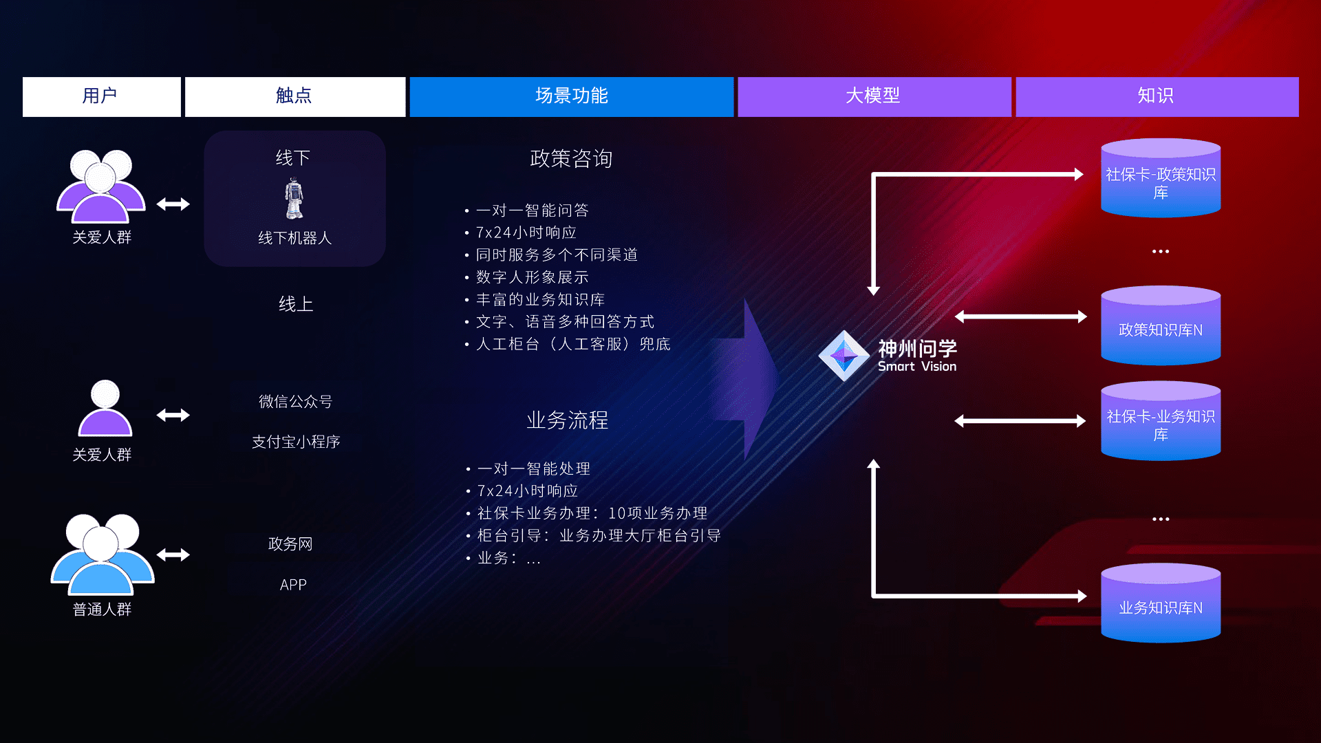 • 线上线下全覆盖:线上提供微信公众号、、支付宝小程序、、政务网、、、app多种渠道,,与线下机器人形成完整服务体系。。。